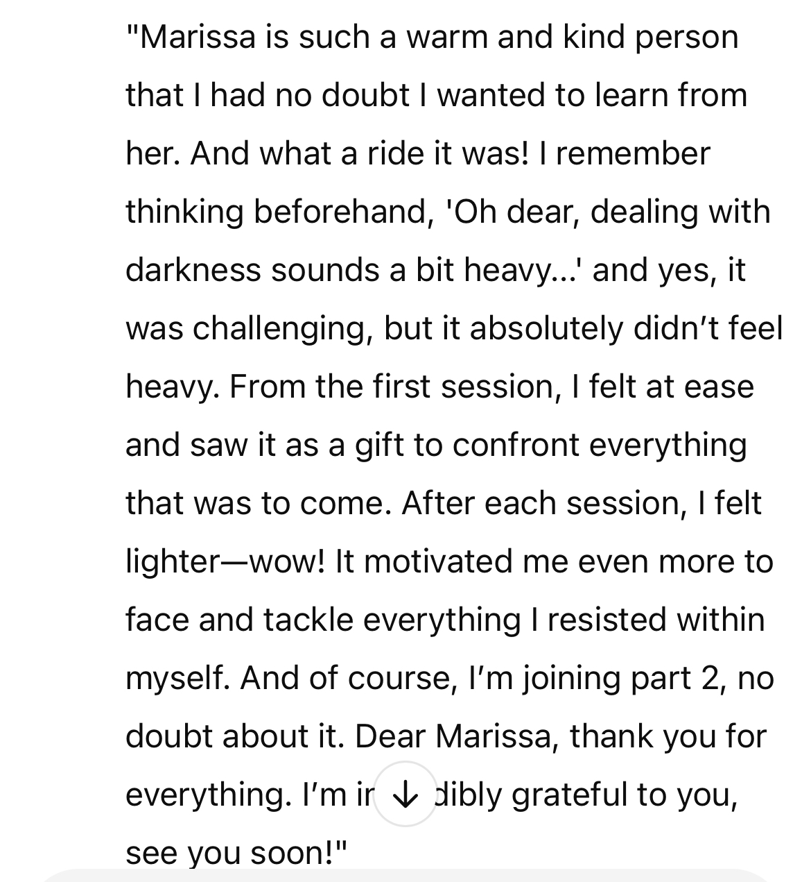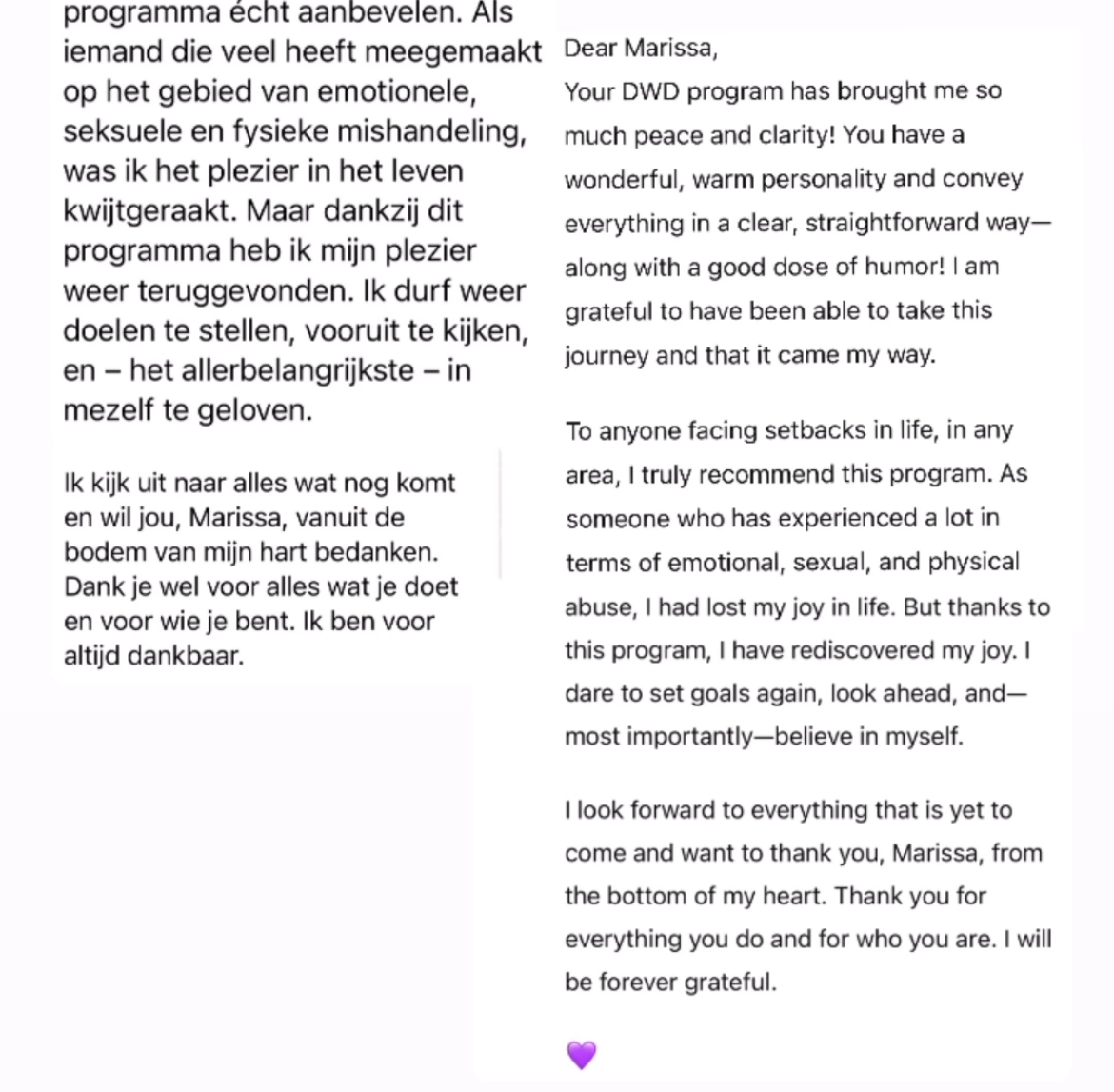 “Ik had gisteren de sessie en ik heb het gevoel dat er een soort super power in mij unlocked is, voelt heerlijk! ❤️”